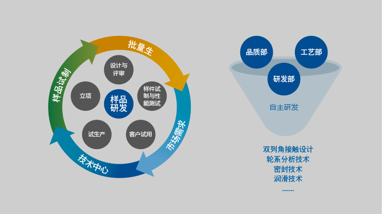 公司技術中心專門負責研發工作,技術中心包括研發部、工藝部和品質部。其中研發部負責編制開發計劃及產品設計,工藝部負責工藝文件及過程設計,品質部負責測量系統分析及質量控制。公司以客戶需求和自主研發共同推動業績持續高質量增長。